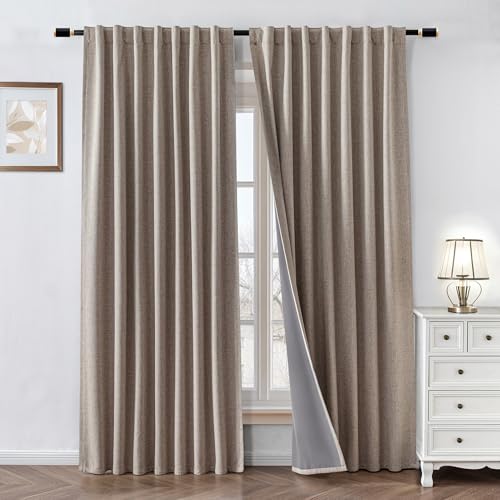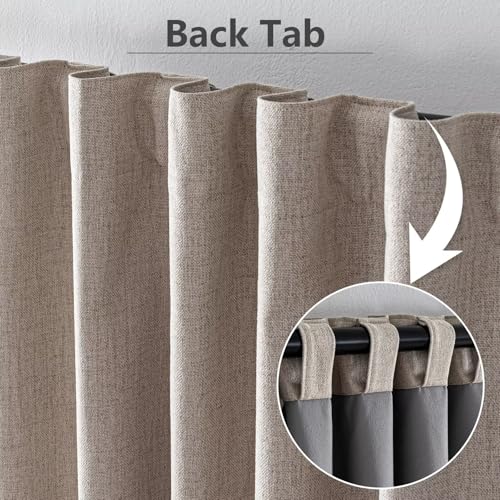 Specification: 100% Blackout Curtains 84 inch Length 2 Panels Faux Linen Long Drapes for Bedroom Nursery Living Room Black Out Room Darkening Curtain Thermal Insulated Back Tab Rod Pocket(W52 x L84, Beige)