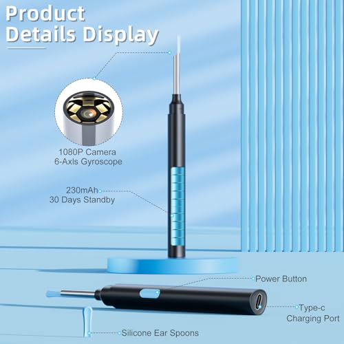 【1080P HD Ear Camera】 This ear wax removal tool has a 360° professional wide-angle camera, which can be rotated infinitely, 3-axis anti-shake technology, can take smoother and clearer pictures and videos, can send videos to doctors Ask about the condition of the ear canal without going to the hospital
