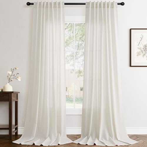 96 inch Long Linen Curtains 2 Panels Set for Living Room Back Tab Ivory Cream Semi Sheer Curtain 96 inches Long Boho Modern Light Filtering Linen Drapes Floor to Ceiling Length 8 FT