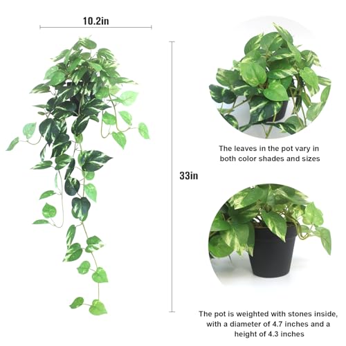Specification: alyptus Fake Pothos Hanging Plants – 33″ Set of 2 Artificial Silk Ivy Vines with Pots, Realistic Faux Greenery for Indoor Home Decor, Low Maintenance Hanging Plant Decoration (Golden Green)