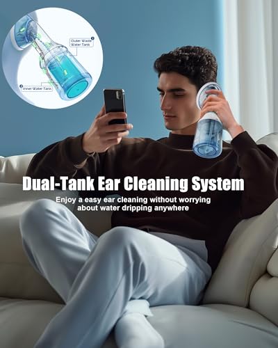 Mess-Free Earwax Removal Dual Water Tank System: The dual-tank system in this ear wax removal kit separates clean and waste water, ensuring a clean and efficient ear wax removal process without the mess. Perfect for at-home ear cleaning without worrying about water dripping everywhere.