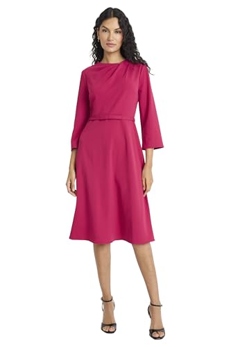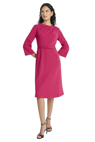 Specification: Maggy London Women’s Elegant A-line Midi Asymmetrical Neckline-3/4 Bell Sleeves-Bow Belt-Versatile Work Dresses