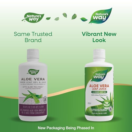 Specification: Nature’s Way Aloe Vera Leaf Juice and Inner Leaf Gel, with Aloe Polymax+, Certified for Aloe Content and Purity, Wild Berry Flavored, 33.8 Fl Oz (Packaging May Vary)