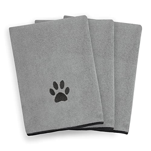 Ritz Premium Embroidered Microfiber Pet Towel (3-Pack), 18″ x 28″, Highly Absorbent, Fast-Drying, Long-Lasting, Super Soft 80% Polyester and 20% Polyamide Pet Cloth, Grey