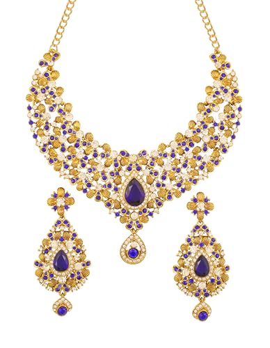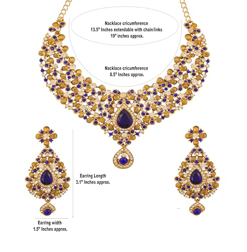 Specification: Touchstone Indian Bollywood Traditional Rhinestone Bridal Designer Jewelry Necklace Set for Women in Antique Gold or White Tone.