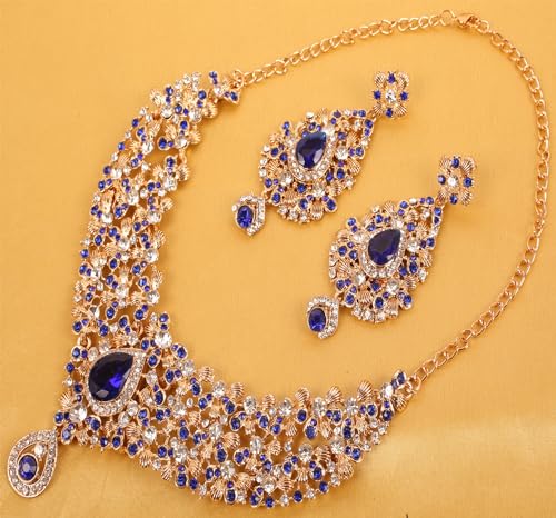 Touchstone Indian Bollywood Traditional Rhinestone Bridal Designer Jewelry Necklace Set for Women in Antique Gold or White Tone.