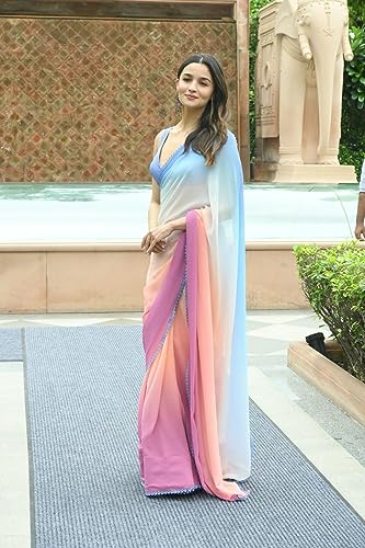 Women’s Printed Pure Georgette Saree With Unstitched Blouse Piece (Rocky Aur Rani Ki Prem Kahani Saree)