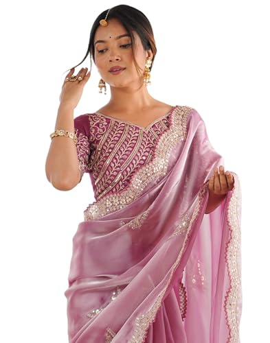 Specification: Women’s Tissue Silk Sequence Embroidery Saree With Unstitched Blouse Piece
